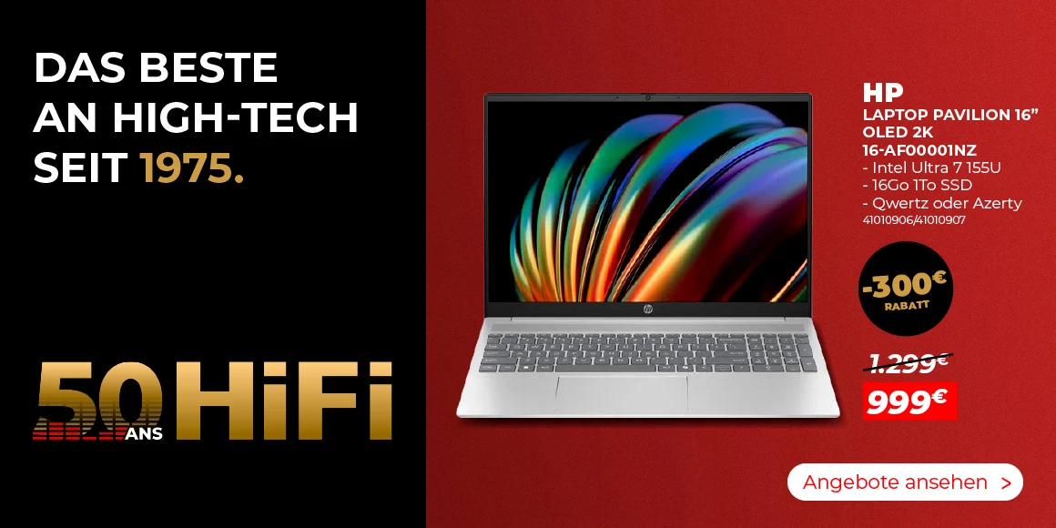HIFI Luxembourg, Ihre spezialisierten Geschäfte für Haushaltsgeräte, Computer, Multimedia, TV und High-Tech in Luxemburg. Entdecken Sie unser umfangreiches Angebot an High-Tech-Produkten in unseren 9 HIFI-Geschäften und online. Egal, ob Sie eine Waschmaschine, einen Wäschetrockner, einen Kühlschränke oder freistehenden Kühlschrank für Ihre Küche, ein Smartphone zum Anschließen, einen 4K TV oder 8K-Fernseher, einen Laptop für die Arbeit oder Multimedia zu Hause suchen - Sie können sich immer auf uns verlassen! Wir verpflichten uns, Ihnen erschwingliche High-Tech-Lösungen anzubieten, ohne die Qualität zu beeinträchtigen. Bei HIFI Luxembourg wird jedes Produkt, das wir anbieten, sorgfältig ausgewählt, um technische Exzellenz und Respekt vor Ihrem Budget zu vereinen. Entdecken Sie unser breites Sortiment an High-Tech-Produkten, wo sich Preise und Top-Marken treffen. Wir haben ein Glossar für Sie zusammengestellt, falls Sie sich fragen, welchen Fernseher Sie wählen sollen? um Ihnen bei der Auswahl zu helfen.