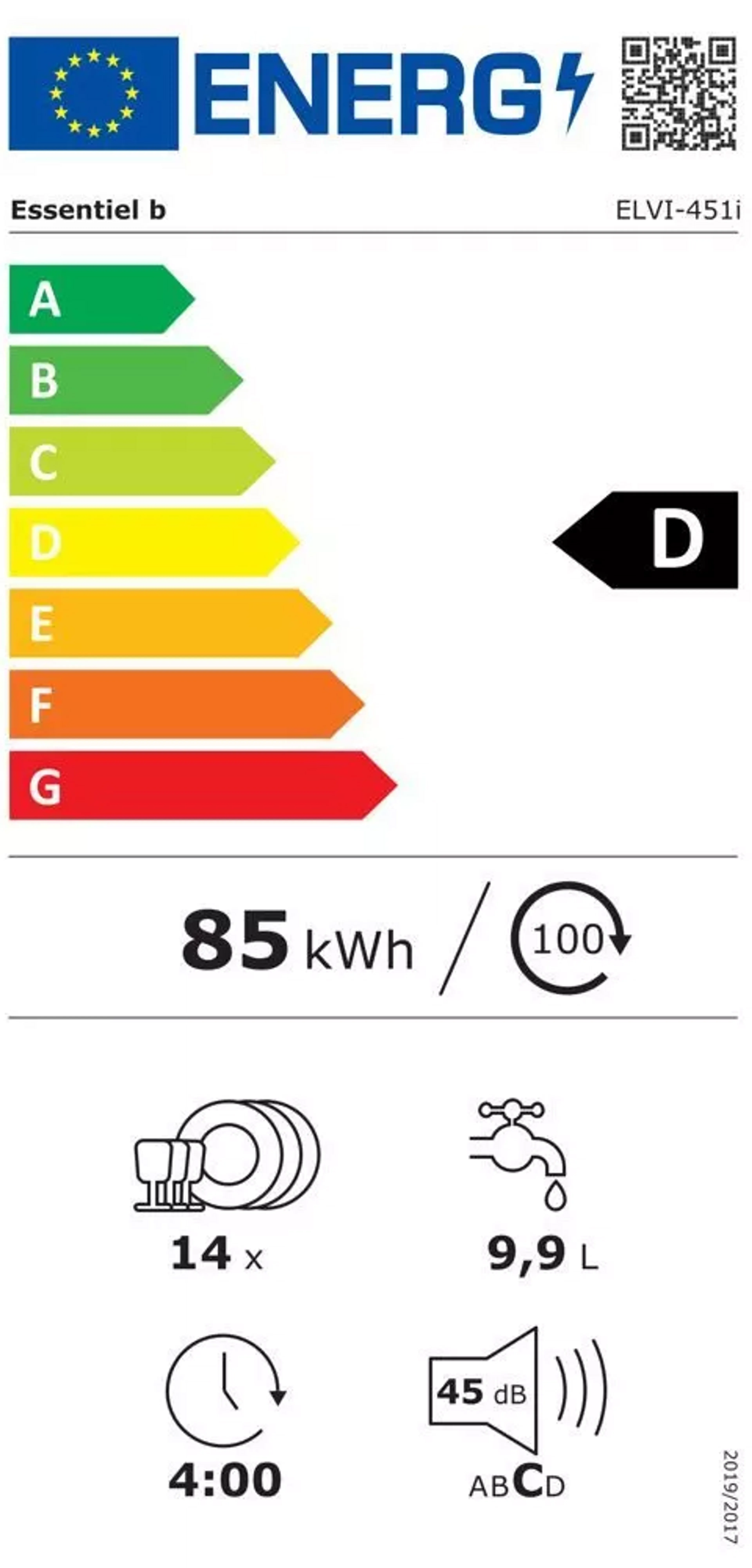 The semi-integrated dishwasher Essentielb ELVI-451i is an optimal choice for those seeking a versatile, silent, and energy-efficient appliance to take care of their dishwashing needs on a daily basis. Its practical design, exceptional washing performance, and discretion make it a valuable ally in any modern kitchen.