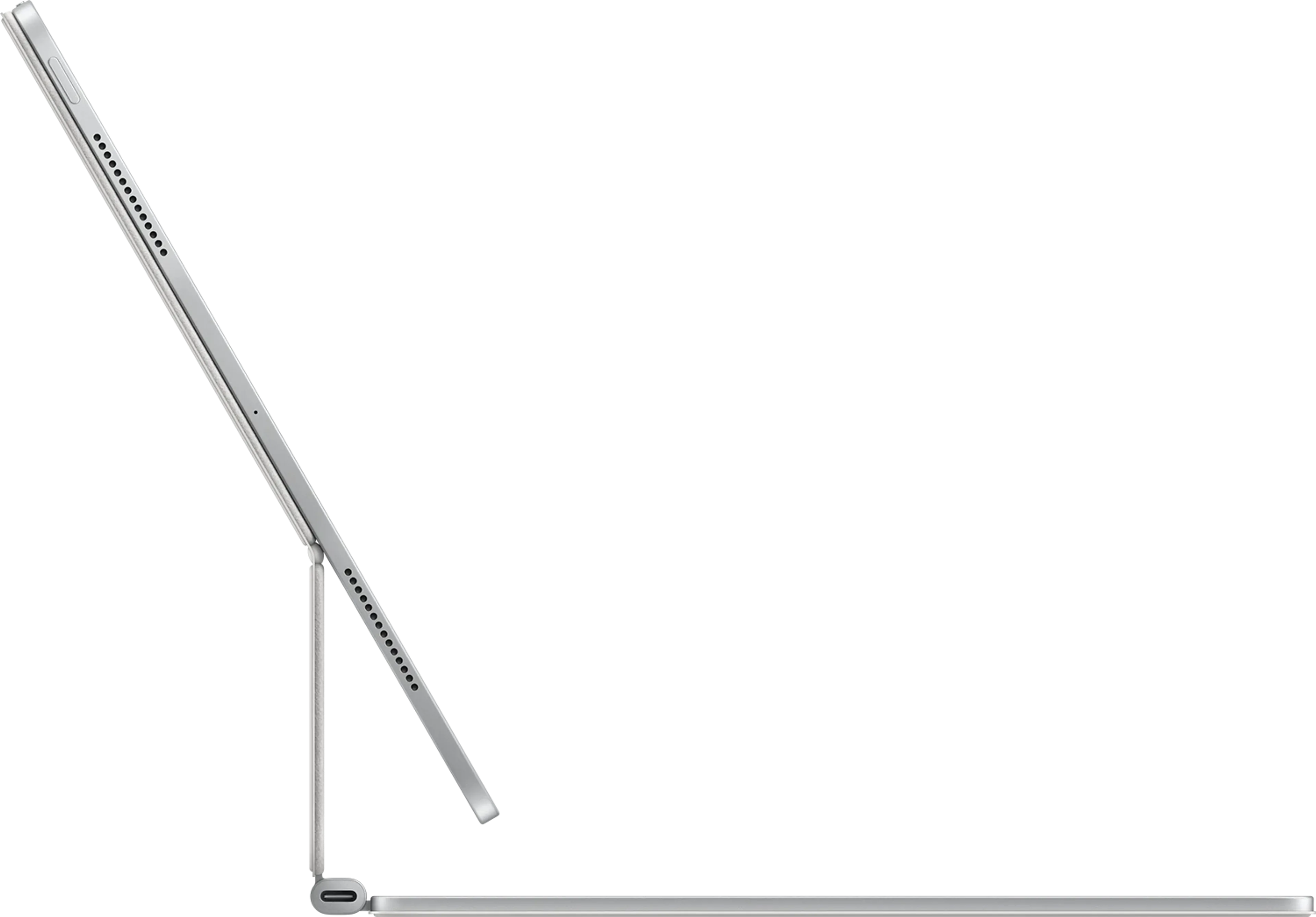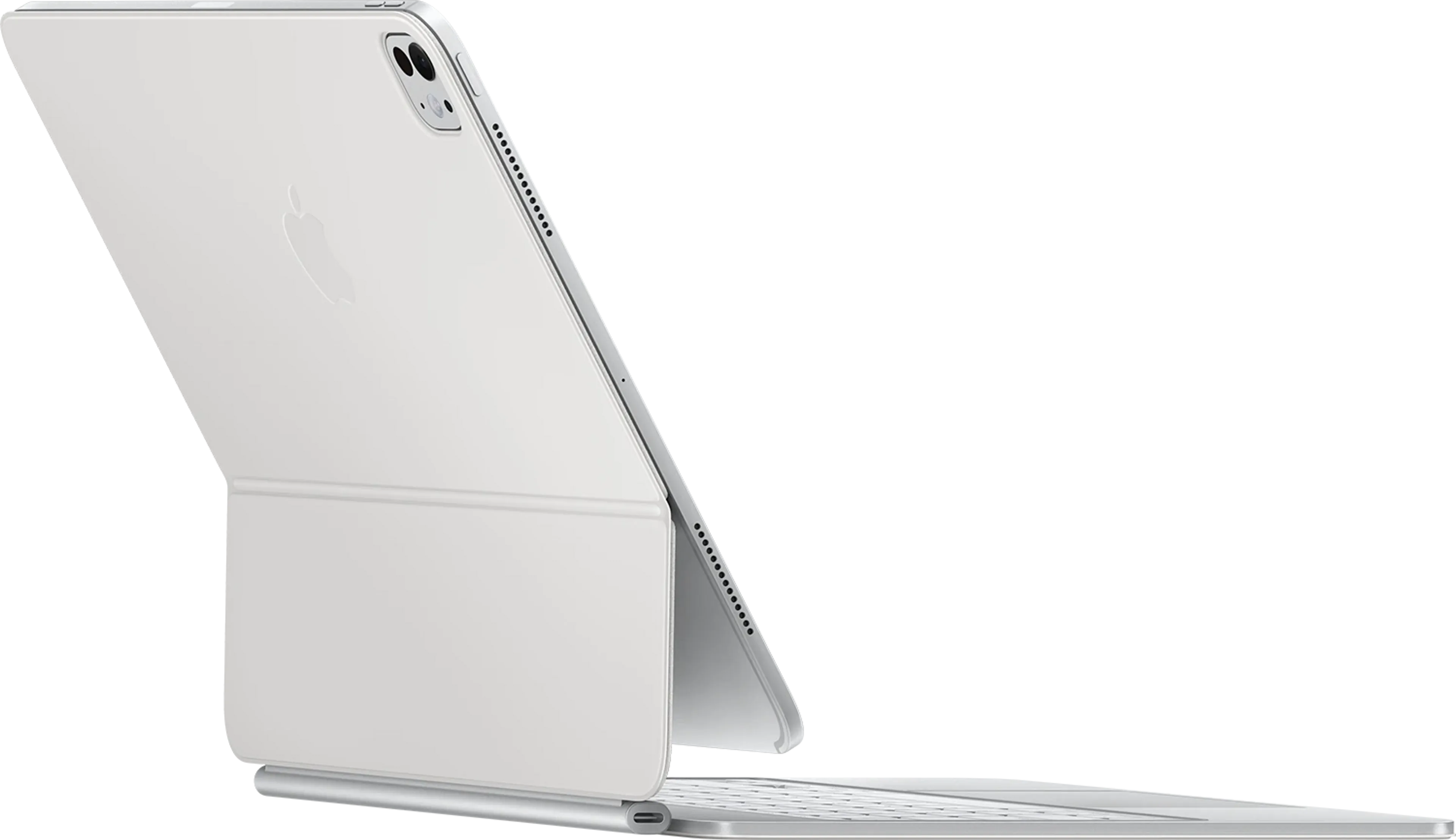 Le Magic Keyboard comprend une rangée de 14 touches de fonction, offrant un accès pratique aux réglages de luminosité de l'écran, de volume et plus encore. Le design suspendu de type cantilever permet un ajustement facile pour trouver l'angle de vision idéal, tandis que le connecteur USB-C assure une recharge passthrough efficace.